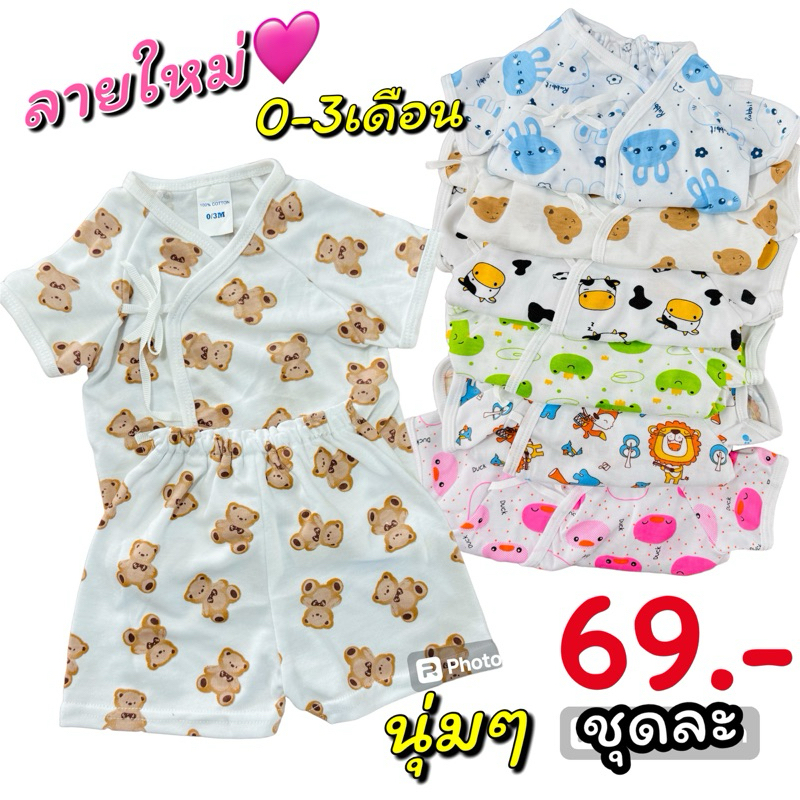 🇹🇭มาใหม่ ผูกสั้นเด็ก ชุดเด็กแรกเกิด 0-3เดือน เนื้อผ้าคอตตอนนุ่มๆ ลายให้เลือกเยอะ