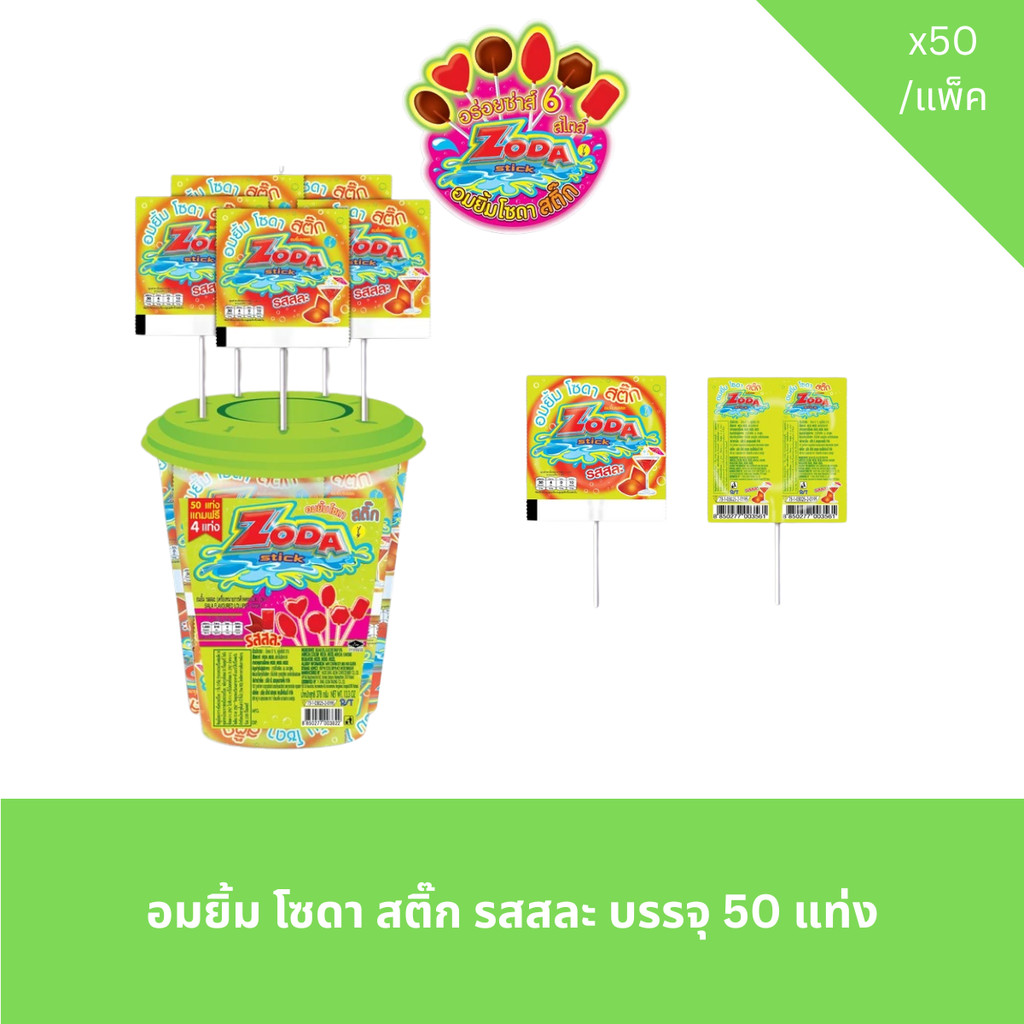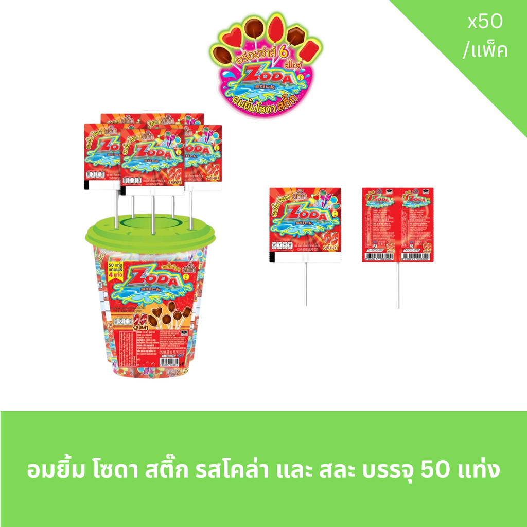 ZODA Stick อมยิ้มรสโคล่าและสละ ขนาดบรรจุ 50 แท่ง