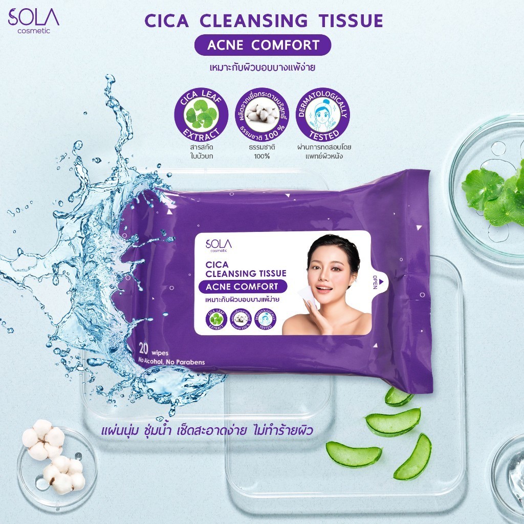 ถูก/แท้/มีไลฟ์ เช็ดเครื่องสำอาง Sola Cica Cleansing Tissue โซลา คลีนซิ่งทิชชู่ ทิชชู่เปียก แผ่นเช็ดทำความสะอาด เช็ดหน้า