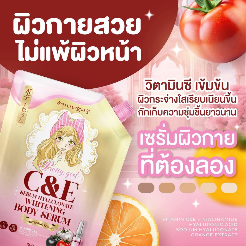 เซรั่มพริตตี้เกิร์ล Pretty girl C&E HYA WHITENING GOLD SERUM เซรั่มบำรุงผิวกาย (ขนาด 300 มล.)