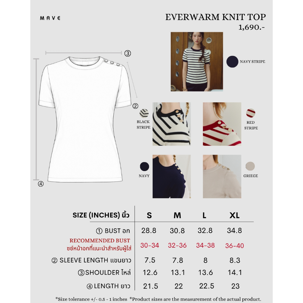 MAVE เสื้อรุ่น Everwarm knit top สี Navy,Black stripe,Griege,Navy stripe