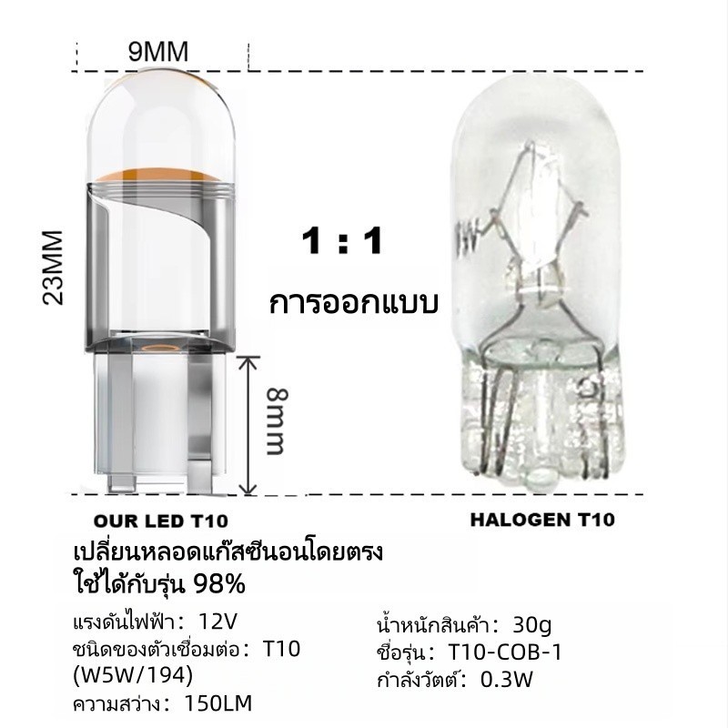 1 อัน* 12V ไฟหรี่ LED T10 เคลือบ เรซิ่น มี 7 สีให้เลือก ขาว ฟ้า น้ำเงิน เขียว ส้ม แดง ชมพู