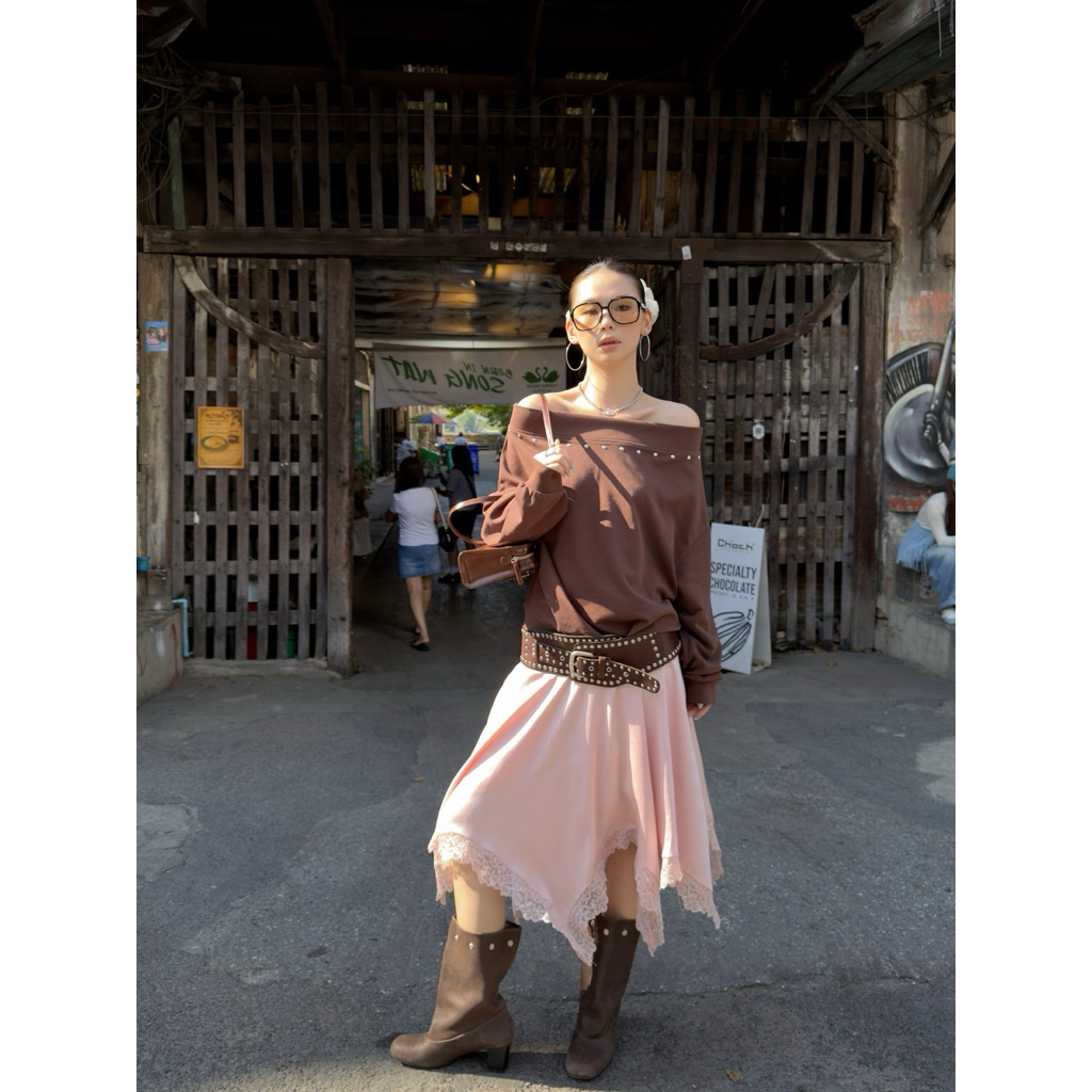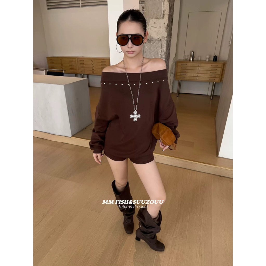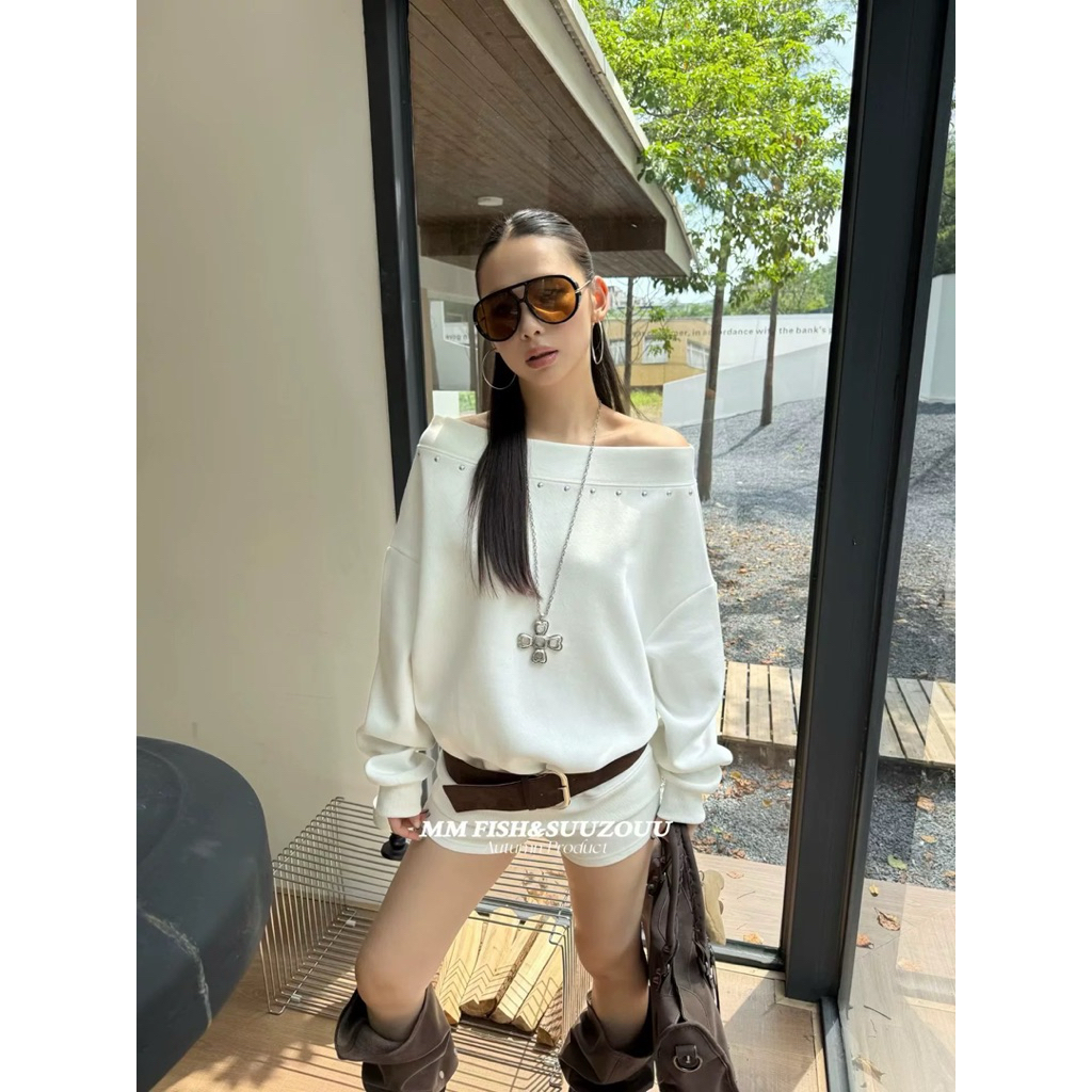 ส่งด่วน 🛵 MMFISH 𝗦𝗧𝗨𝗗𝗗𝗘𝗗 𝗘𝗗𝗚𝗘 𝗦𝗪𝗘𝗔𝗧𝗘𝗥 เสื้อสเวตเตอร์ปาดไหล่ทรงโอเวอร์ไซส์