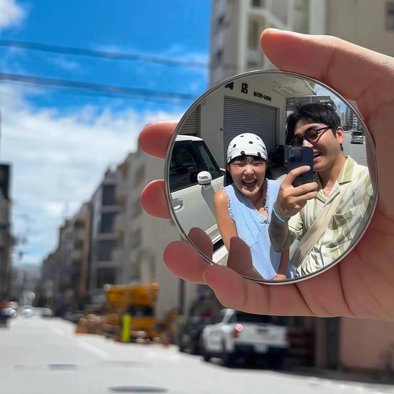 กระจกเซลฟี่ขนาดเล็กแบบพกพากระจกวงกลมขนาดเล็กกระจกเซลฟี่คู่รักรุ่นใหม่ อุปกรณ์ประกอบฉากถ่ายภาพ