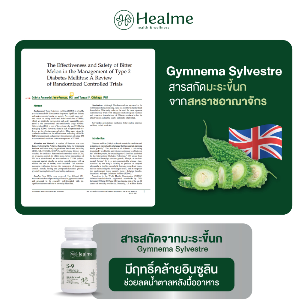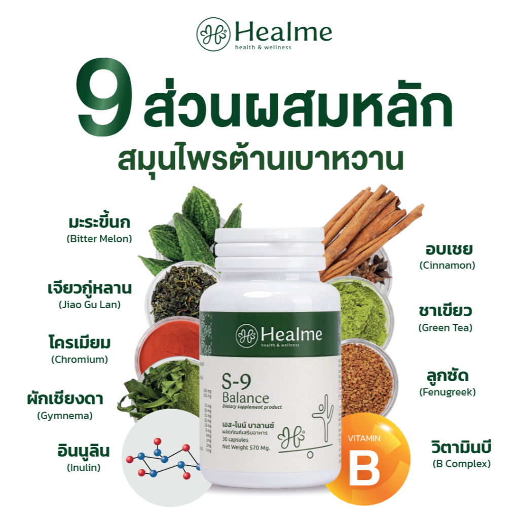 Healme S-9 Balance อาหารเสริมสมุนไพร 9 ชนิด ต้านเบาหวาน ปรับสมดุล คุมน้ำตาล