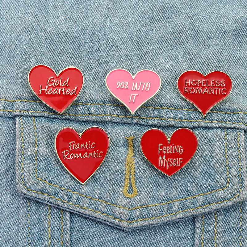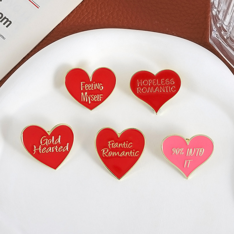 เข็มกลัดลายการ์ตูนหัวใจสีแดงเคลือบทอง พร้อมข้อความสร้างสรรค์ สินค้าแฟชั่นสำหรับเป็นของขวัญให้เพื่อน