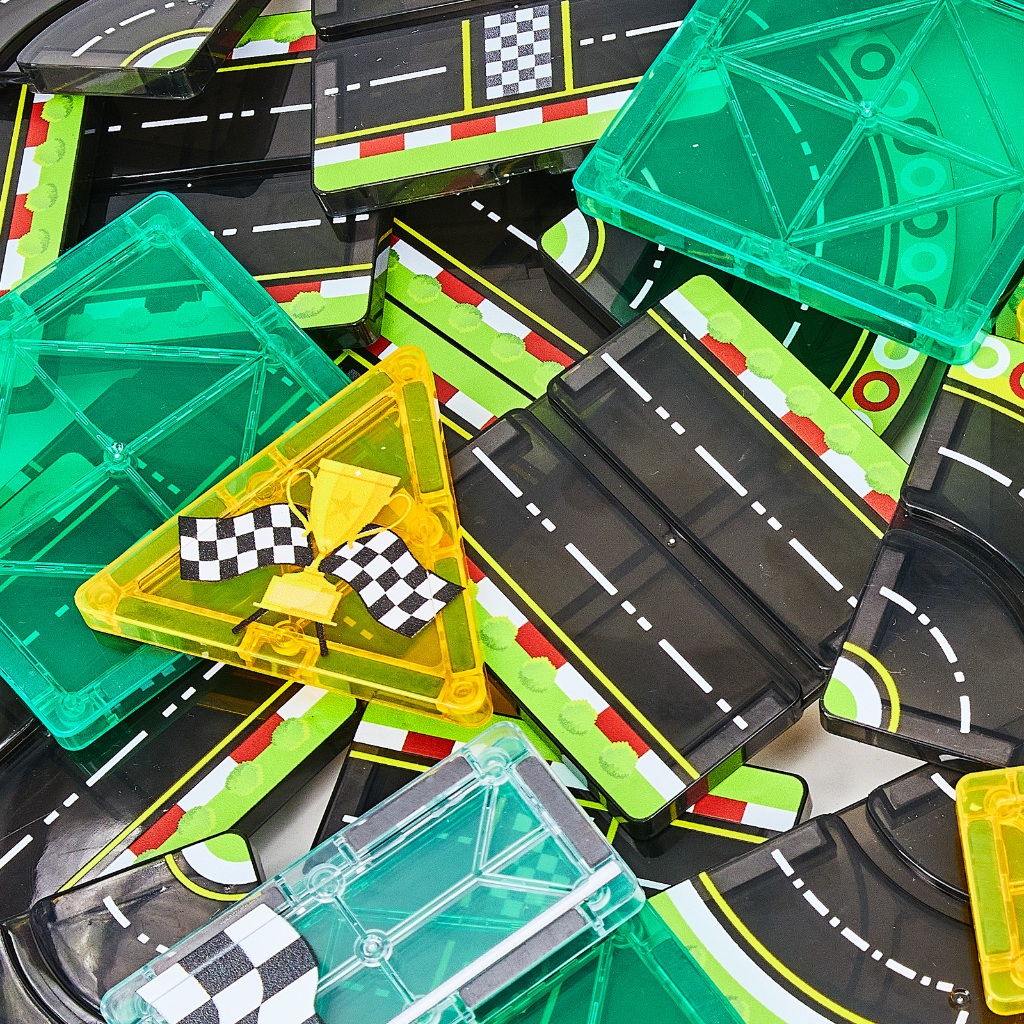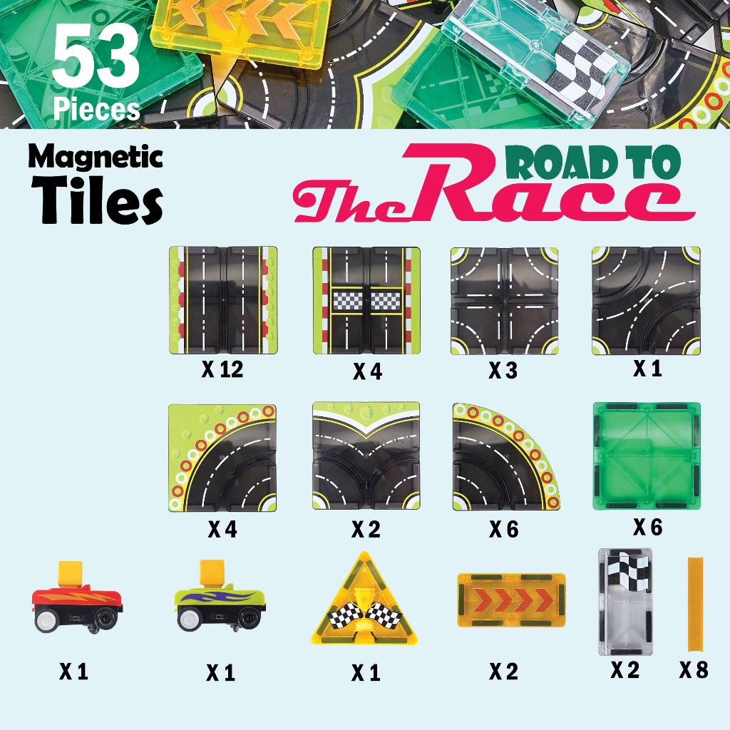 Magnet Tiles Road to The Race ของเล่นตัวต่อแม่เหล็กรางรถชุดสนามแข่ง 53 ชิ้น