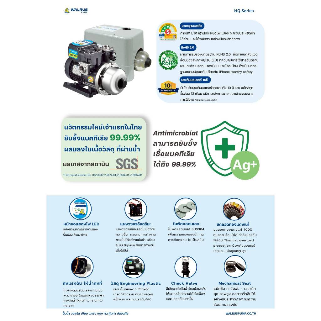 💥NEW แท้ ส่งไว💥 WALRUS ปั๊มน้ำอัตโนมัติ รุ่น HQ400B / HQ400BC ใบพัดสแตนเลส 370W ท่อ1นิ้ว ปั๊มน้ำ ปั้มน้ำ ปั๊มน้ำออโต้ HQ