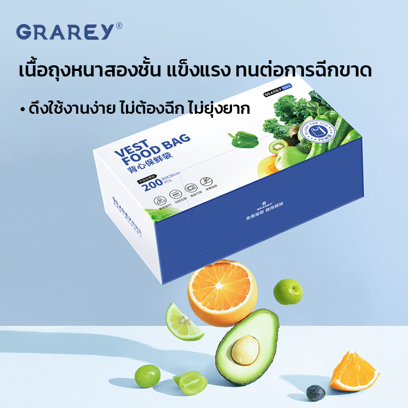 GRAREY ถุงพลาสติกหูหิ้วใส่อาหารแบบกล่อง บรรจุ 200 ชิ้น ขนาด 30x38 cm ถุงใส ใส่อาหาร ถุงหูหิ้ว