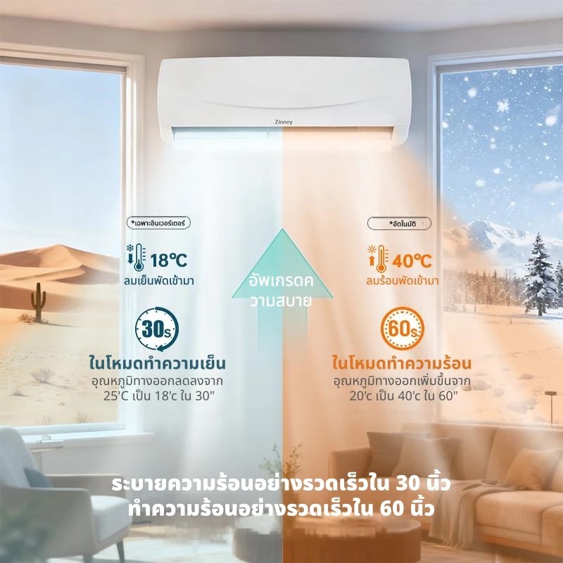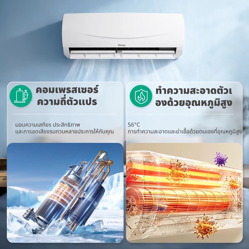 Zinney แอร์ Inverter ขนาด 12,000 BTU รุ่น ZAC-BP12A เครื่องปรับอากาศติดผนัง เย็นเร็ว ทนทาน ประหยัดไฟ