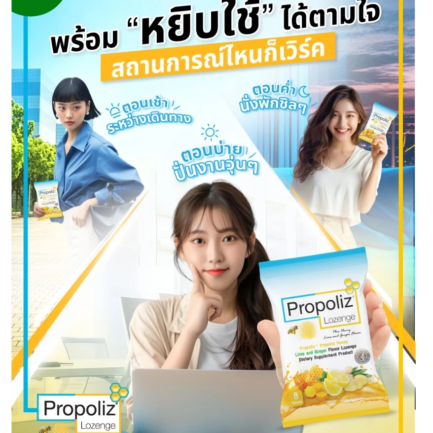 PROPOLIZ LOZENGE PLUS เม็ดอมโพรโพลิซ พลัส ไม่แสบลิ้น ไม่แสบคอ ทางเลือกใหม่จากธรรมชาติ (8 เม็ด)