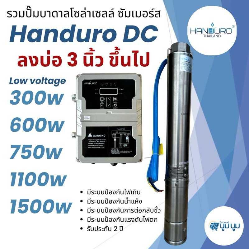ปั๊มน้ำบาดาลโซล่าเซลล์ DC แฮนดูโร่ Handuro บ่อ 2นิ้ว 3นิ้ว 4นิ้ว 300w 600w 750w 1100w 1500w