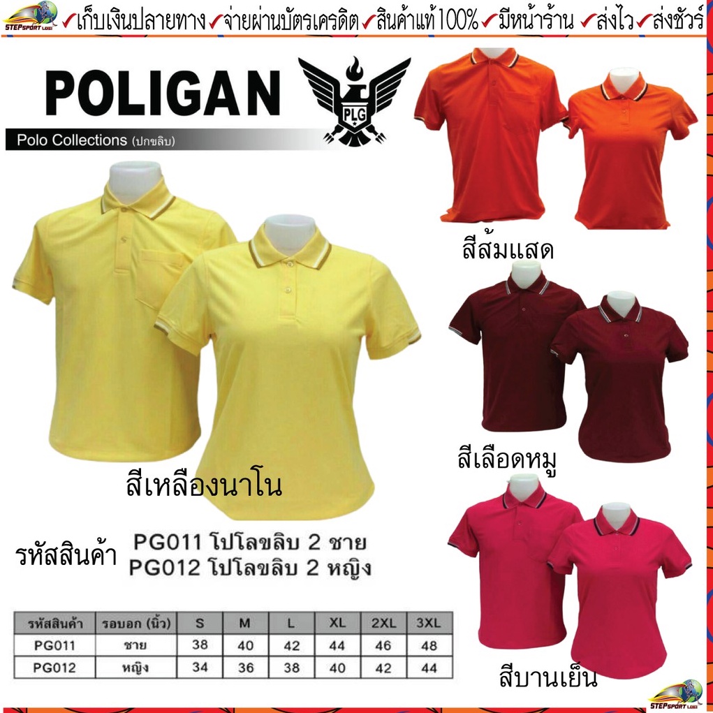 POLIGAN(โพลิแกน)เสื้อโปโล โพลิแกน เสื้อคอโปโล รุ่น ปกขลิบ 2 ชาย รหัส PG011, หญิง รหัส PG012 ขนาดไซร์ S-3XL ชุดสีที่ 2