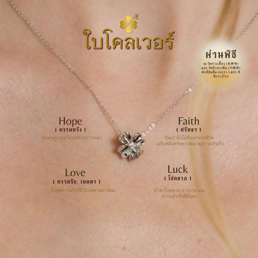 LUCKY CLOVER สร้อยคอ ต่างหู ใบโคลเวอร์นำโชค I เสริมพลัง 2 วัดดัง ตัวเรือนชุบหนาพิเศษ - The Green Box