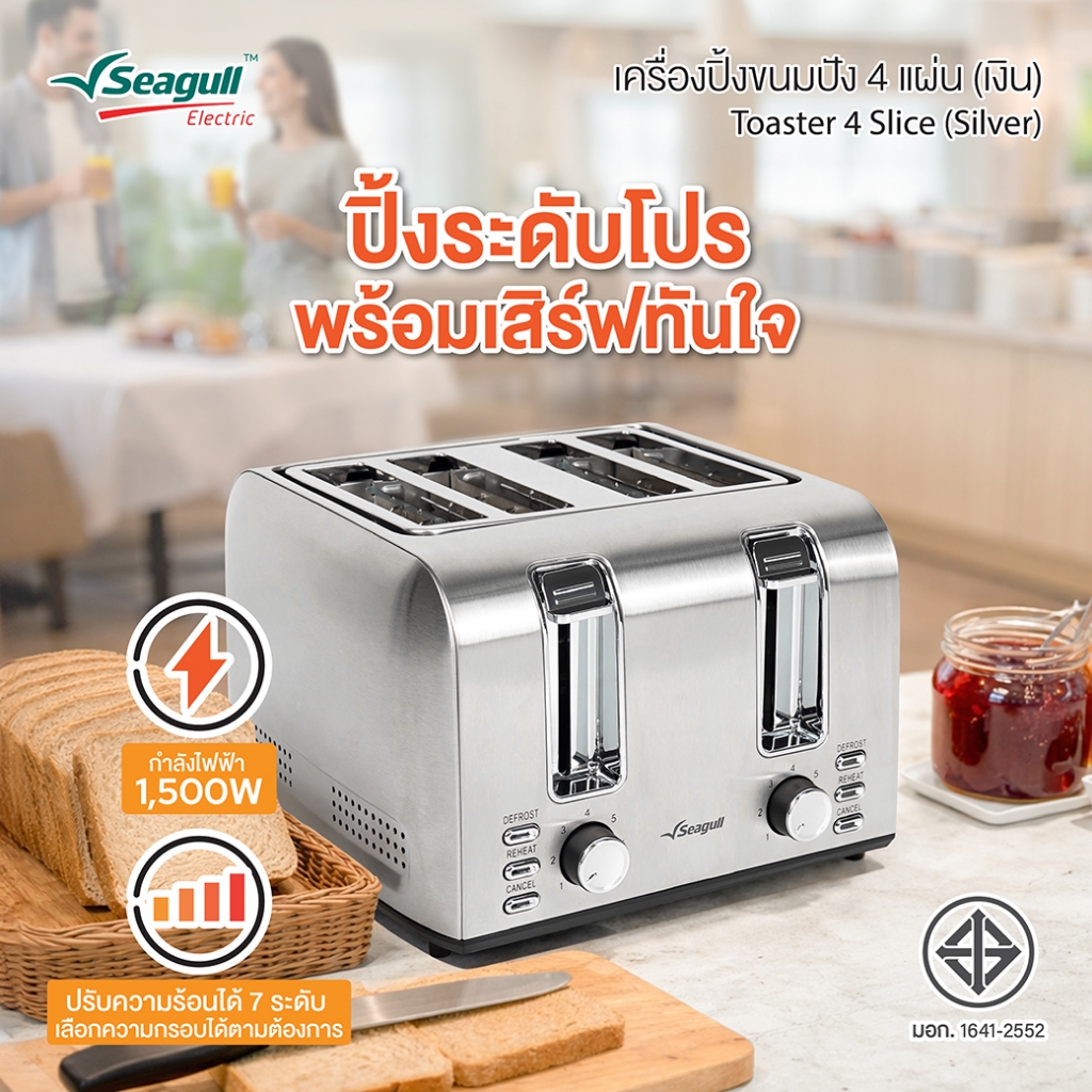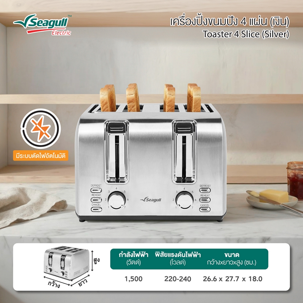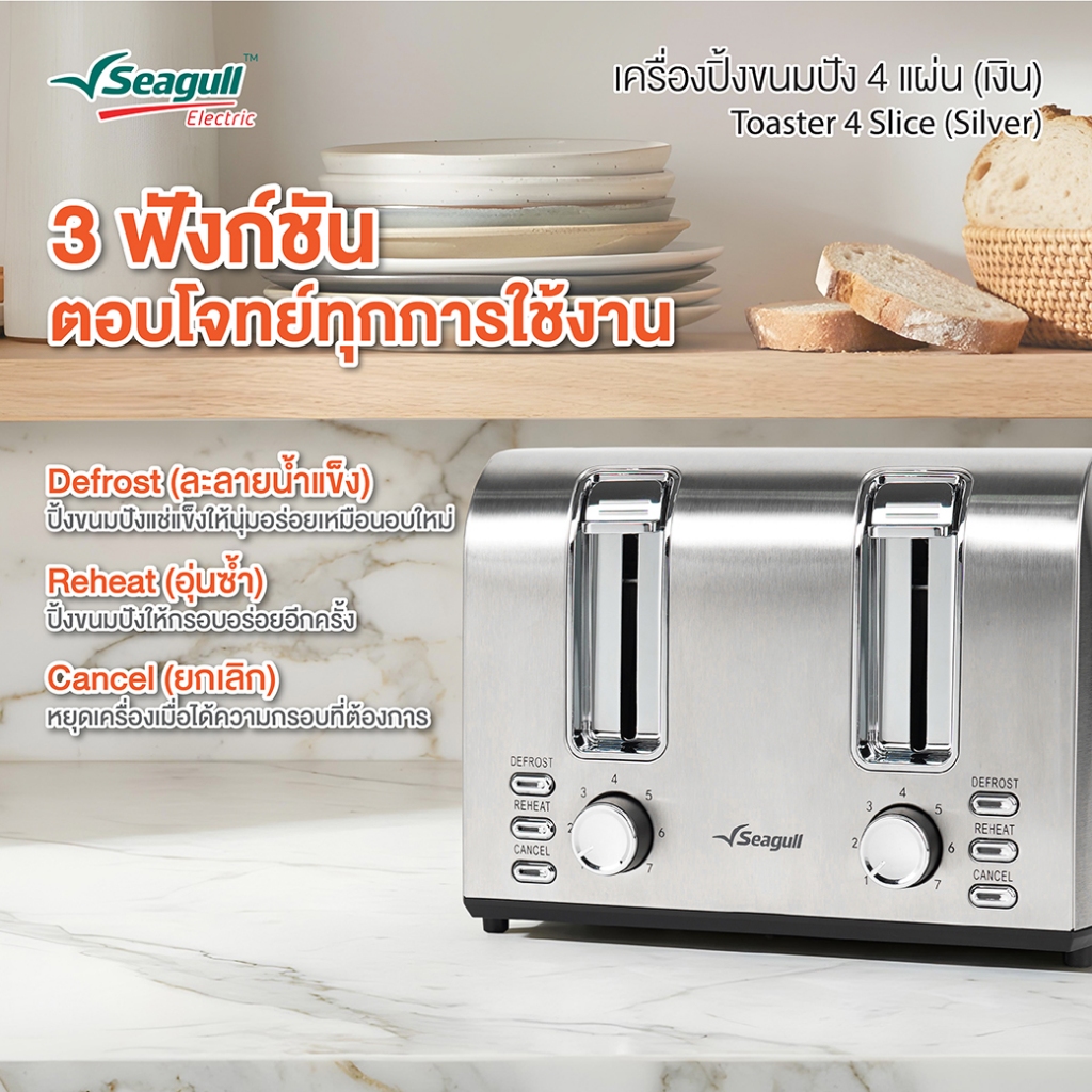 Seagull เครื่องปิ้งขนมปัง 4 แผ่น (เงิน) Toaster 4 Slice (Silver)