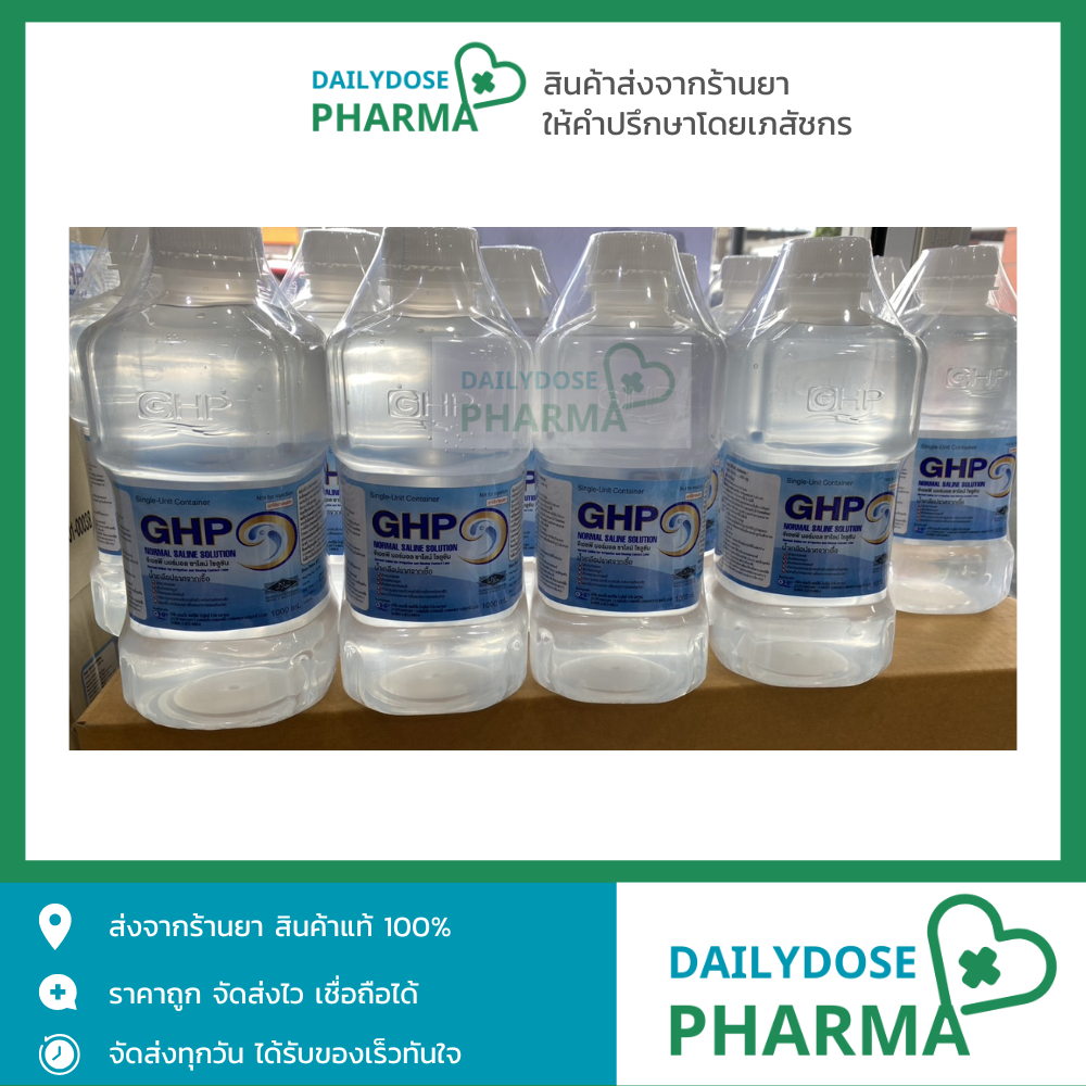 (ยกลัง) น้ำเกลือล้างจมูก ฉลากฟ้า GHP NORMAL SALINE ขวดดัมเบล ปากกว้าง 1000 mL