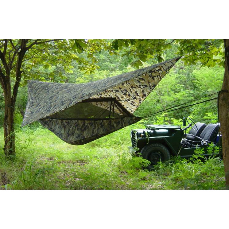 เปล เปลผ้าร่มมีมุ้ง กันแมลง กันยุง เปลผ้าร่ม เปลทหาร เปลนอน ไซส์ XXL (ลายพราง) ผ้าร่มสองชั้น