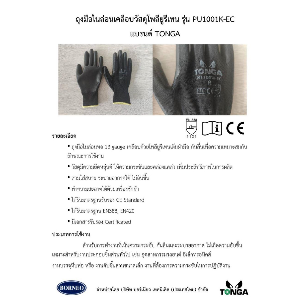 Tonga ถุงมือเคลือบยาง ไนล่อน สีดำ มี 2 Size คุณภาพดี กันบาด กระชับแน่น ยืดหยุ่นสูง ระบายอากาศดี ราคาดีครับ