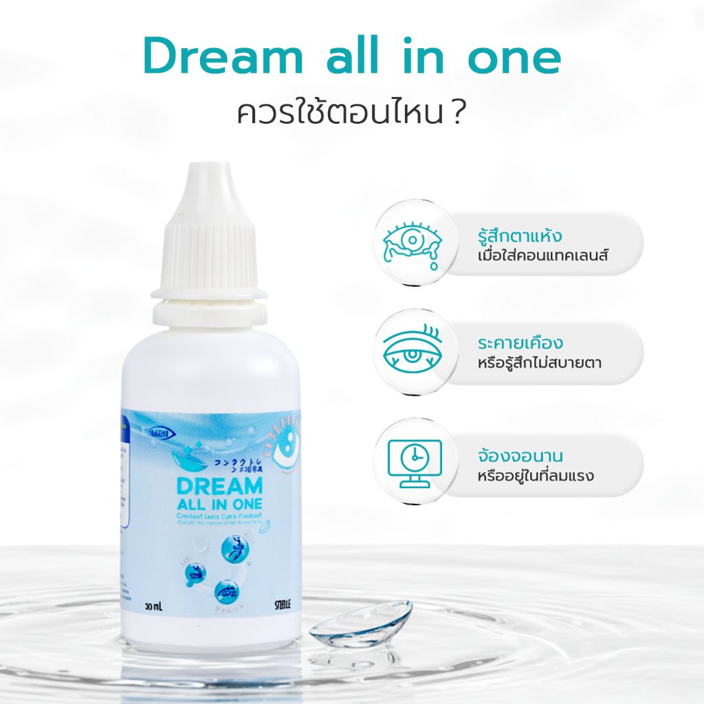 Simple Healthcare น้ำยาล้างคอนแทคเลนส์ DREAM ALL IN ONE น้ำยาหยอดคอนแทคเลนส์ สูตรอ่อนโยน เติมความชุ่มชื้น 30 ml