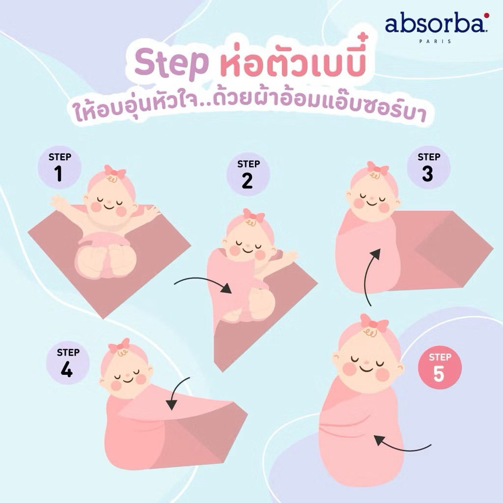 Absorba แอ็บซอร์บา ผ้าห่อตัวเด็กแรกเกิด ขนาด 30x40 นิ้ว