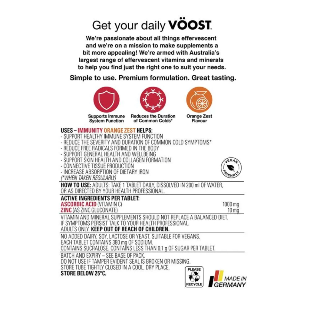 Voost Immunity Orange Zest Effervescent Tablets 20 Pack (ขนาด 20 เม็ด) พร้อมส่ง Exp.01/2028