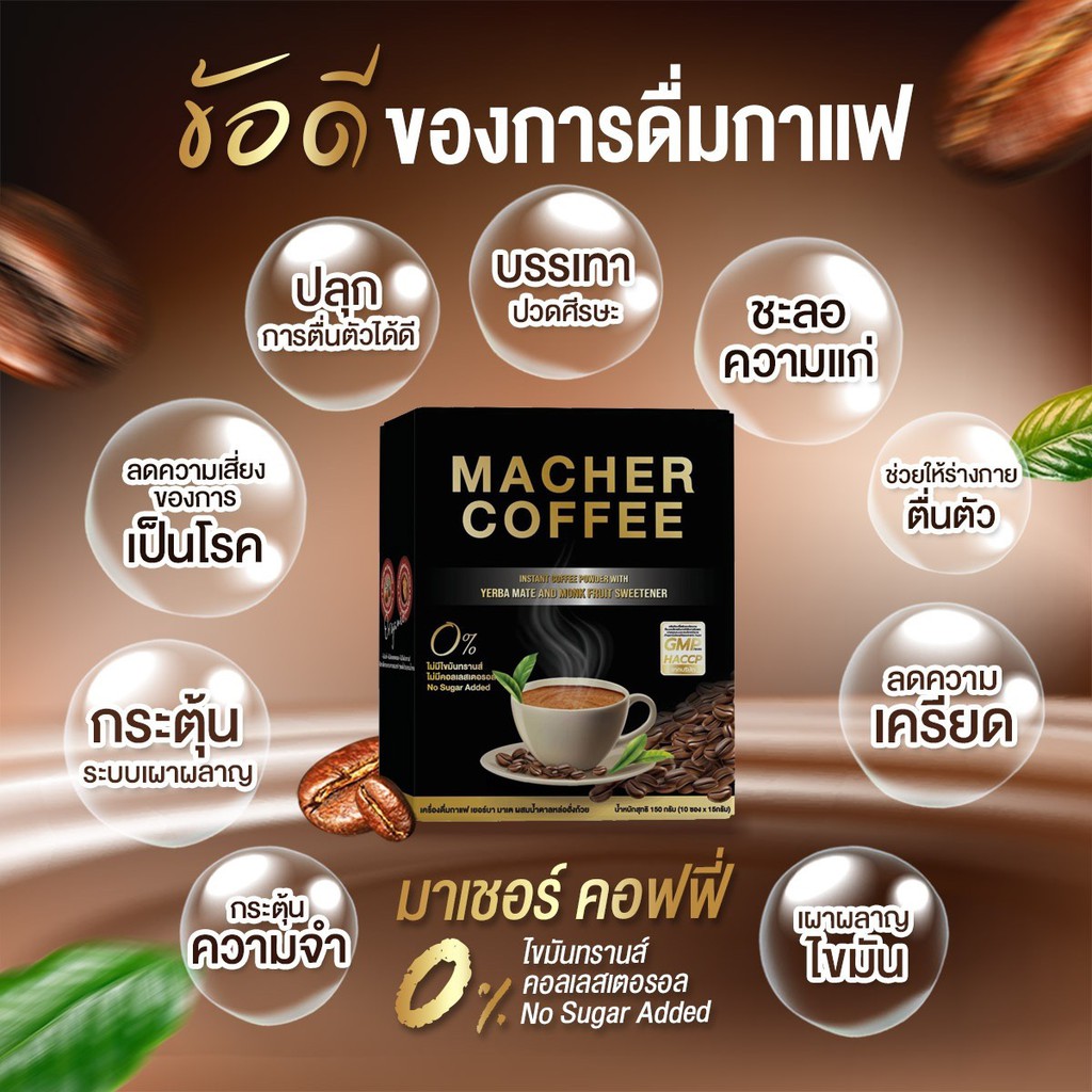 3 แถม 1 มาเชอร์คอฟฟี่ กาแฟมาเชอร์ กาแฟมาเต กาแฟเยอร์บามาเต MacherCoffee Macher Coffee จากธรรมชาติ 100%