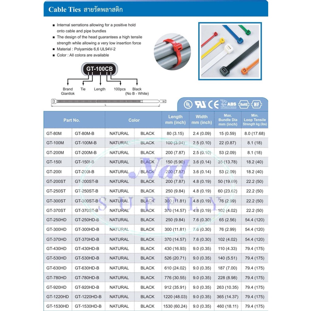 สายรัดเคเบิ้ลไทร์ ขนาด 15นิ้ว กว้าง 7.6mm. Giantlok