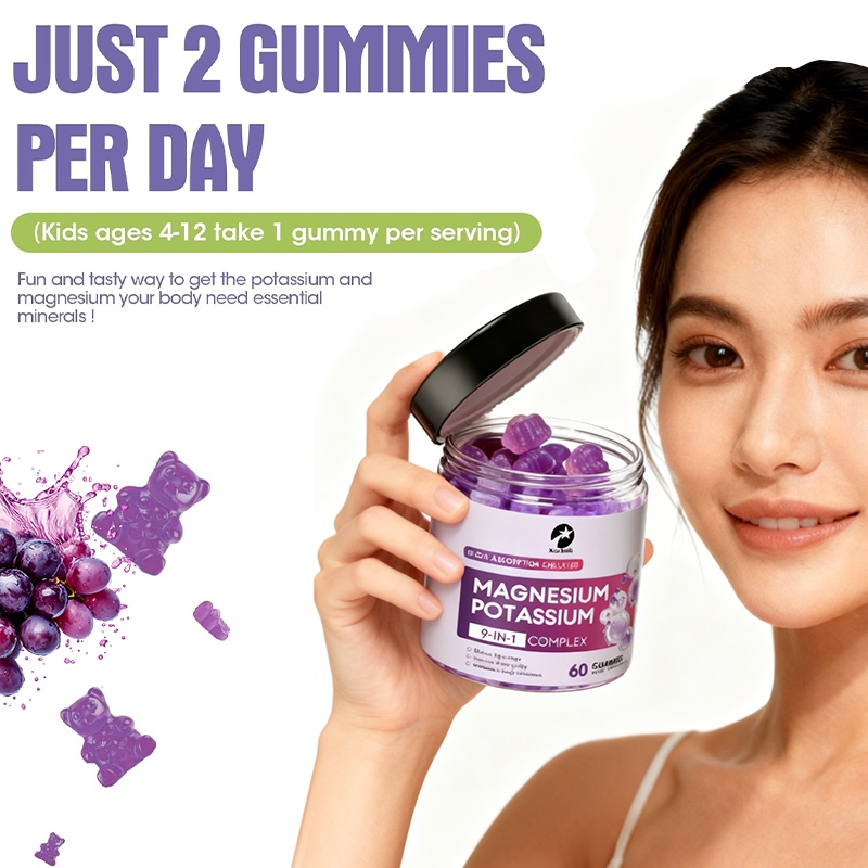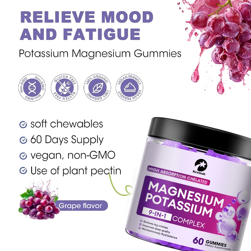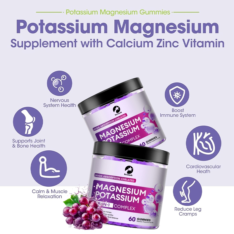 เคซินช โพแทสเซียมแมกนีเซียม กัมมี่ โพแทสเซียมปราศจากน้ําตาลพร้อมแมกนีเซียมไกลซิเนต 500มก. แมกนีเซียมเม็ดเคี้ยว อาหารเสริมพร้อมแคลเซียม, สังกะสี, วิ