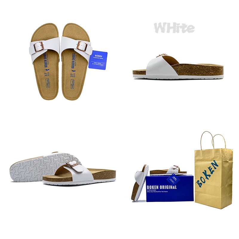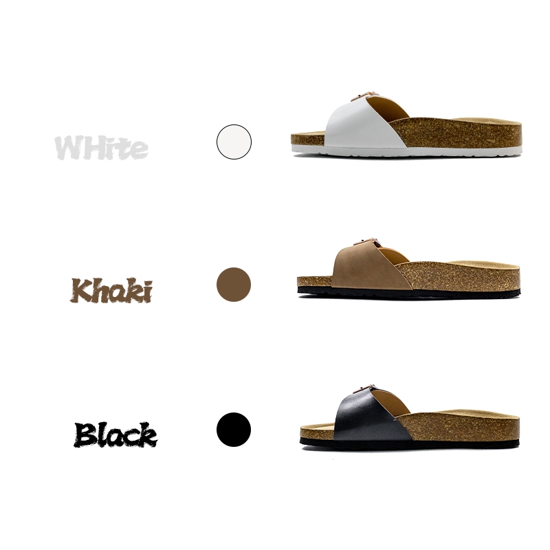 BOKEN รองเท้าแตะ Mules สำหรับผู้หญิงและผู้ชาย ทำจากหนังพรีเมียมและ Cork Slides สไตล์สบายๆ เหมาะสำหรับใส่ลำลอง (สีขาว/ดำ/กากี)
