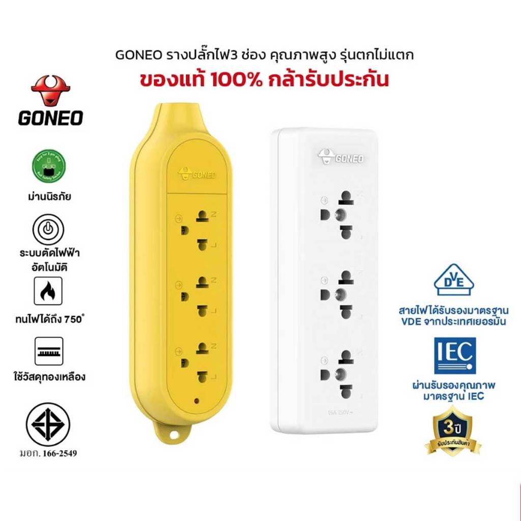 GONEO รางปลั๊กไฟ 3 ช่อง ติดลอย (แบบไม่มีสายไฟ) คุณภาพสูง ทำจากทองเหลือง 3680W รุ่น TC0030, TW0030 Gongnio