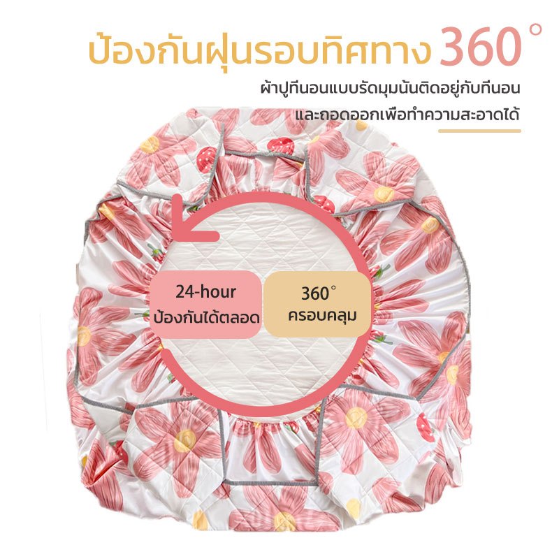 ผ้าปูที่นอนกันไรฝุ่น ผ้าปูที่นอนกันน้ำ100% ครอบคลุมเต็ม 360°ใช้ได้กับขนาด 2-15นิ้ว ระบายอากาศ