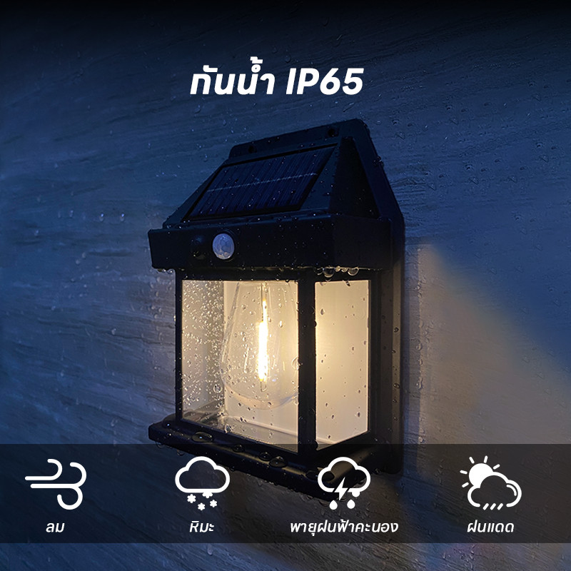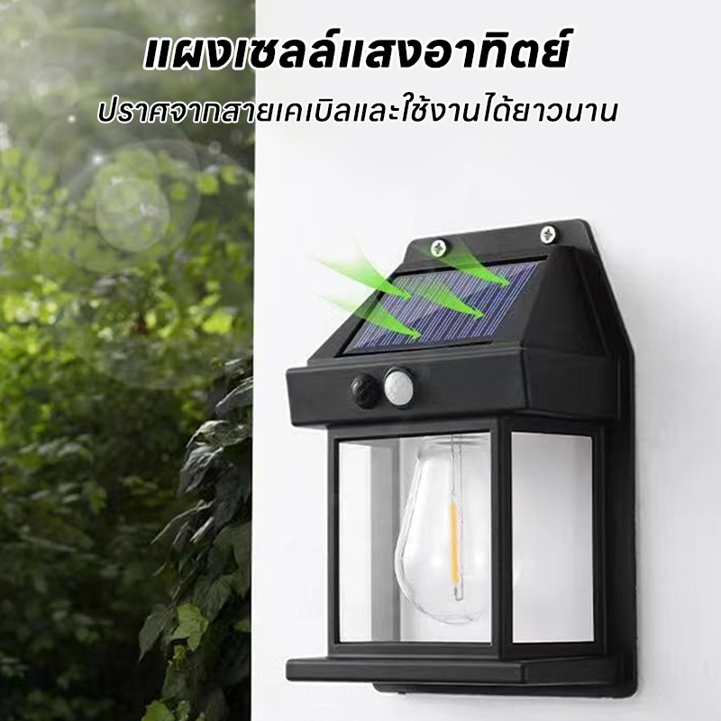 ไฟติดผนังโซล่าเซลล์ LED ไฟแต่งสวนโซล่าเซลล์ แสงสีขาวนวล กันน้ำ ติดตั้งง่าย ไม่ต้องเดินสายไฟ