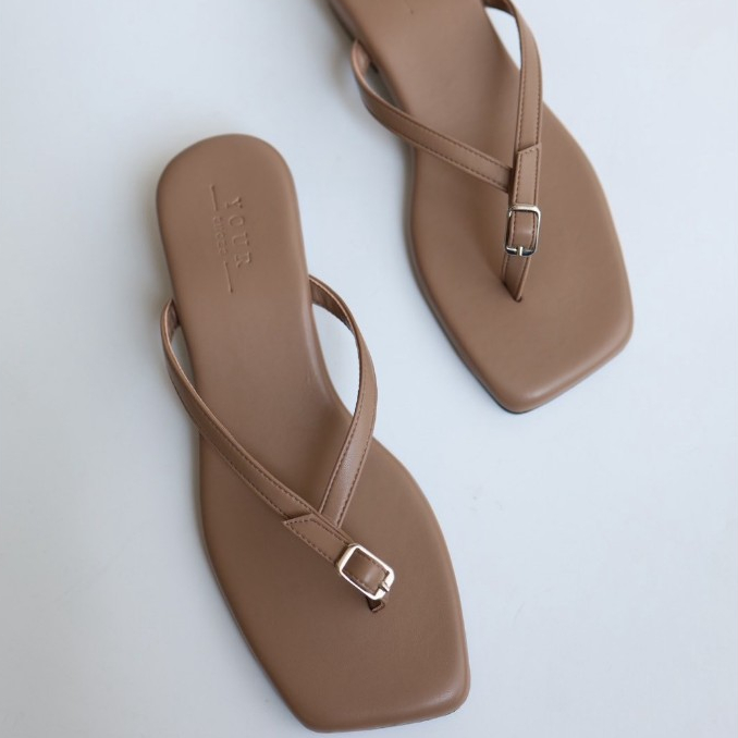 YOURSHOES Z22 (เท้าอวบ เท้ายาว +1ไซส์*) / รองเท้าส้นสูง 1นิ้ว รองเท้าหูหนีบ รองเท้าหนังนิ่ม