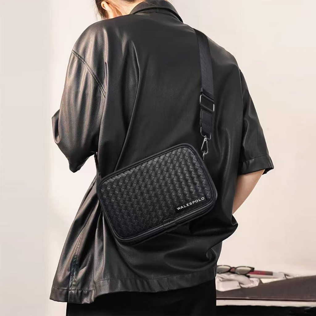 WalesPolo ใหม่ กระเป๋าหนังสะพายไหล่ ขอบแข็ง สไตล์สตรีท แฟชั่นสําหรับผู้ชาย หนังถัก ของขวัญวันเกิดผู้ชาย วันวาเลนไทน์ วัน