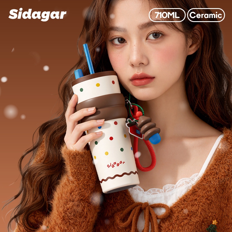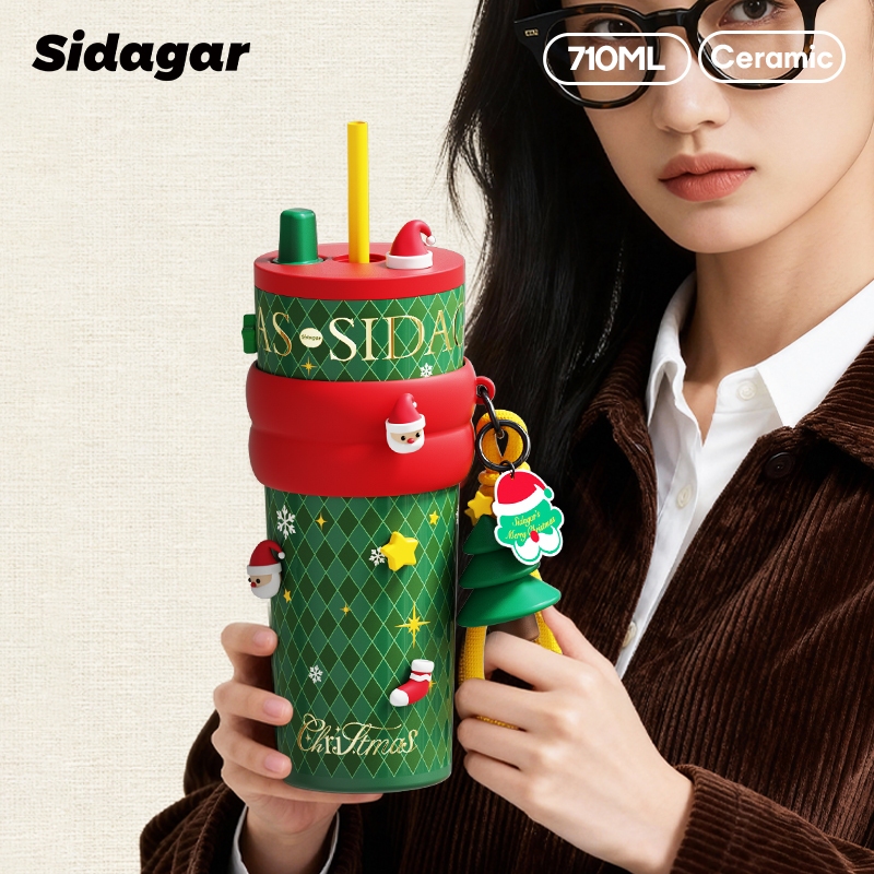 Sidagar 【ของขวัญคริสต์มาสที่สมบูรณ์แบบ】 ซานตาและหิมะแมนเทอร์โมสถ้วย 24 ชั่วโมงร้อน / เย็นถ้วยน้ำพร้อมกล่องของขวัญ