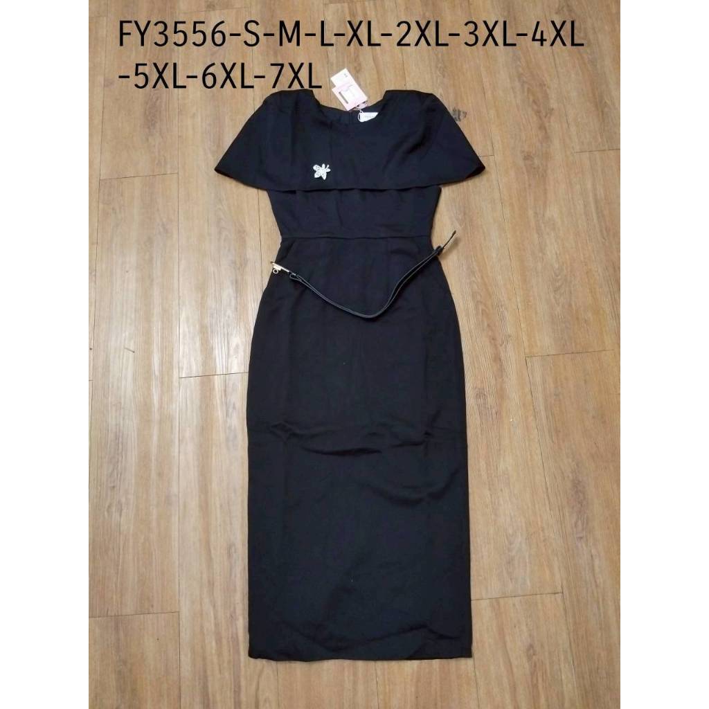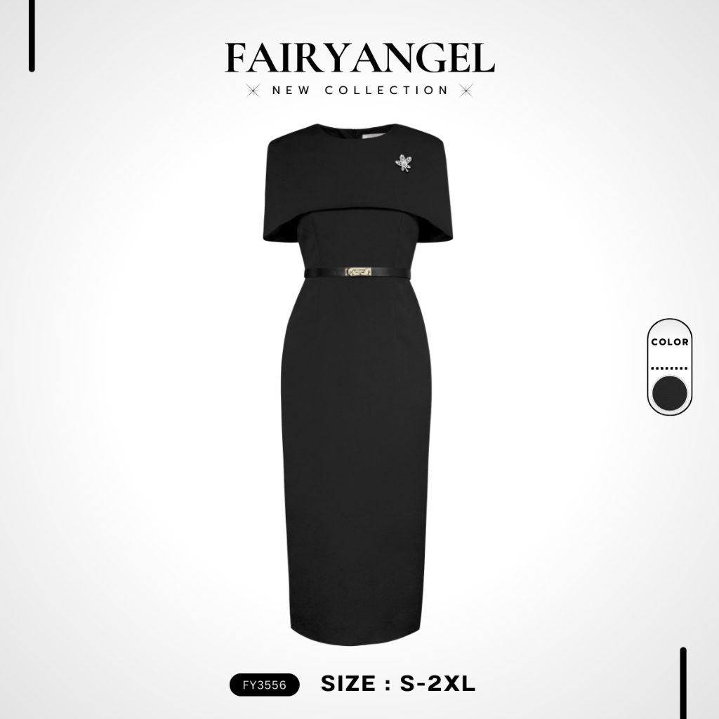 งานป้าย Fairyangel 3556 {S-7XL} (ป้ายแท้) เดรสยาวทรงเข้ารูป แต่งคลุมไหล่ + เข็มกลัด + เข็มขัด