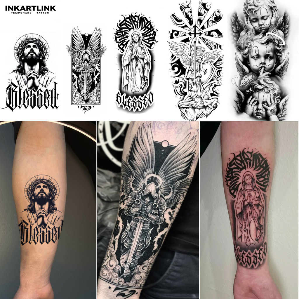 สติ๊กเกอร์รอยสักชั่วคราว Inkartlink Angelic Faith และ.Power กันน้ำ ติดทนนานถึง 15 วัน