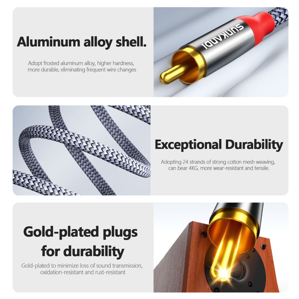 SUNKANDI 2RCA ถึง 2RCA สายสัญญาณเสียงชาย 3D Hi-Fi คุณภาพเสียงสําหรับโฮมเธียเตอร์