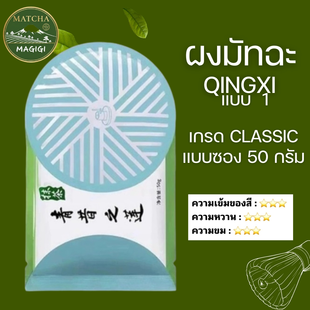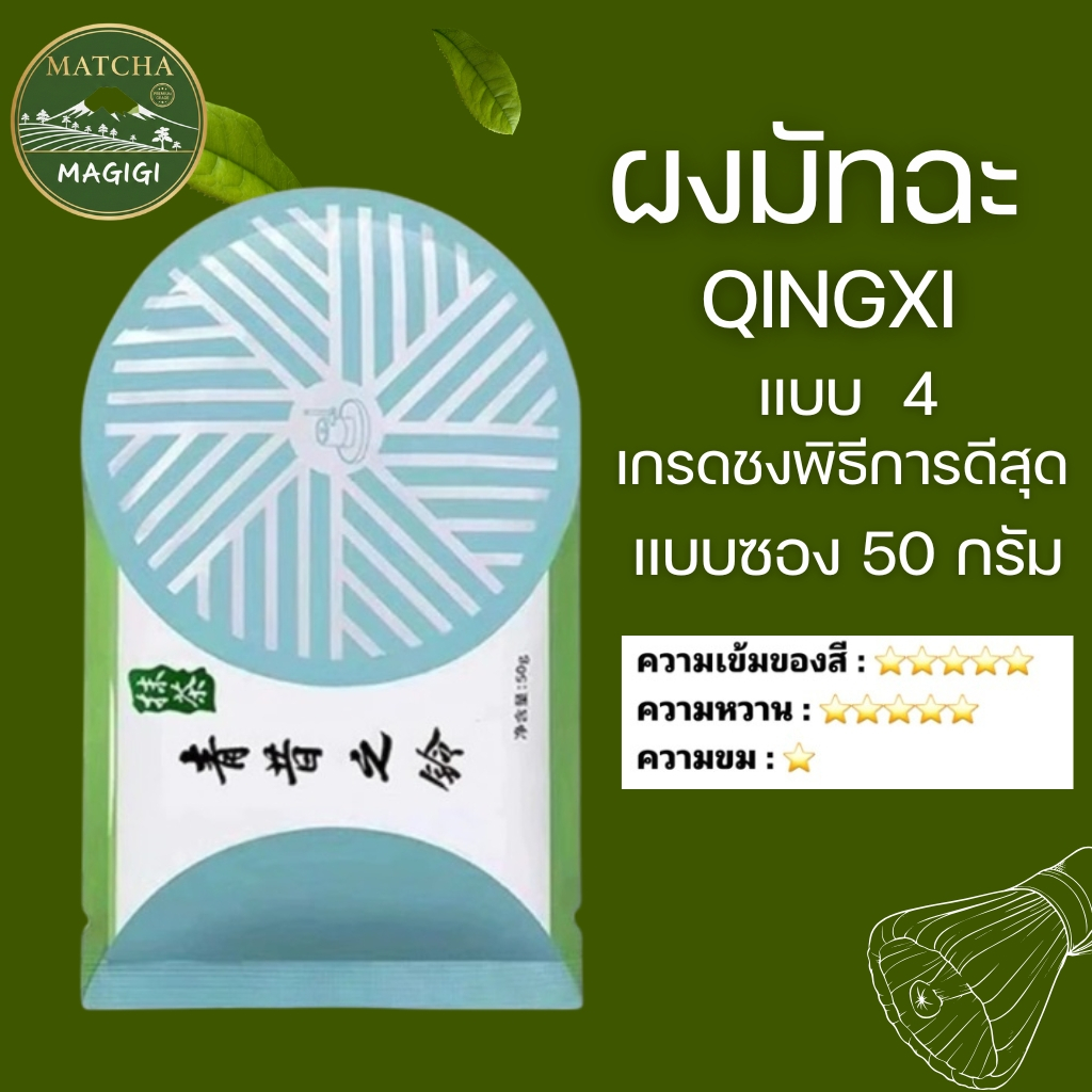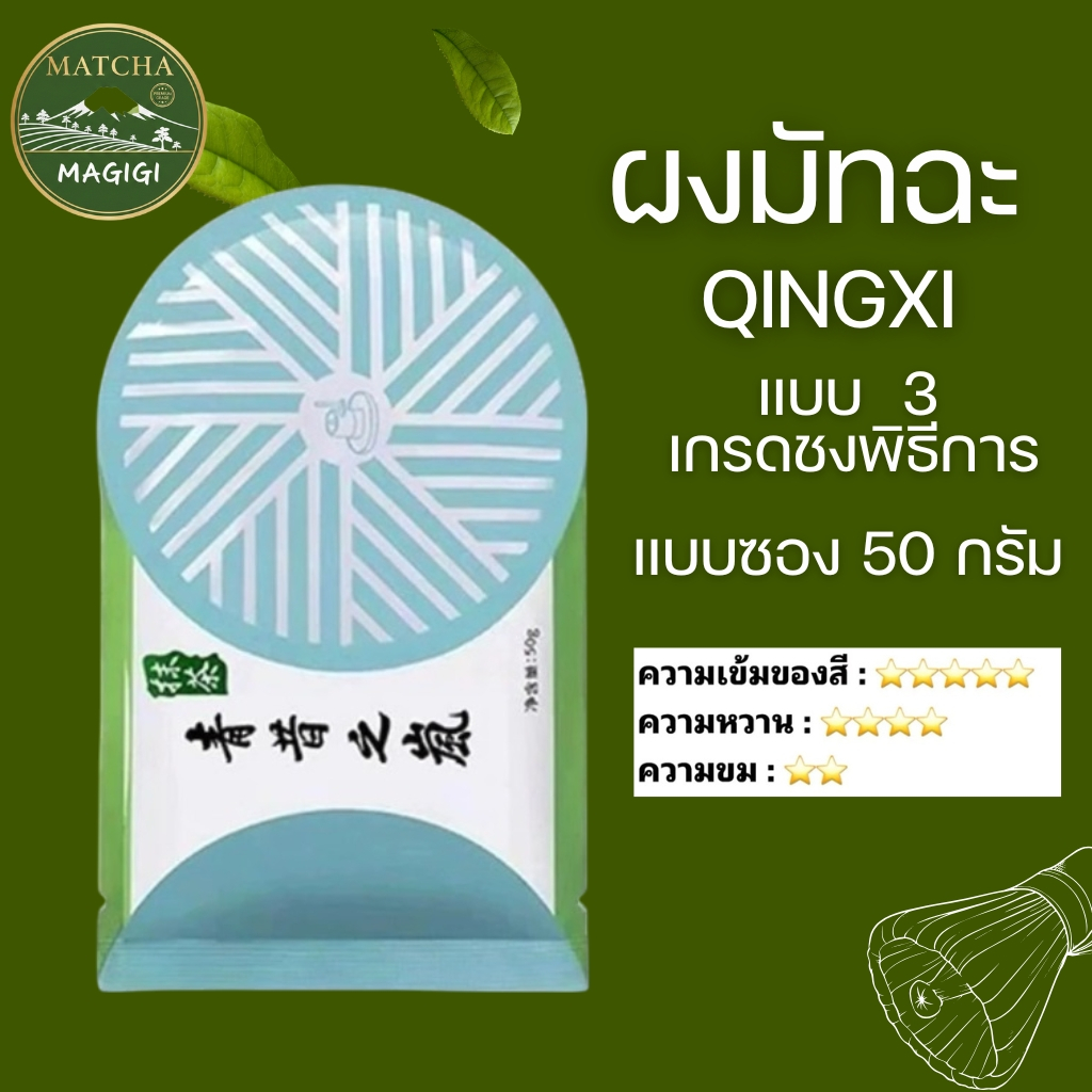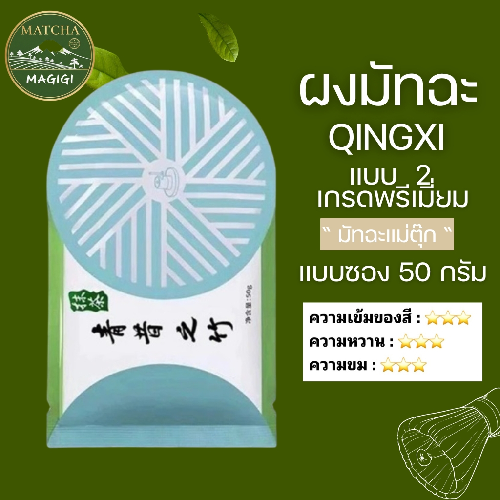 ผงชาเขียวมัทฉะ เกรดพรีเมี่ยม แบบซอง 50กรัม สินค้านำเข้า แบรนด์ Qingxi มี 4 เกรดให้เลือก (Matcha Powder)