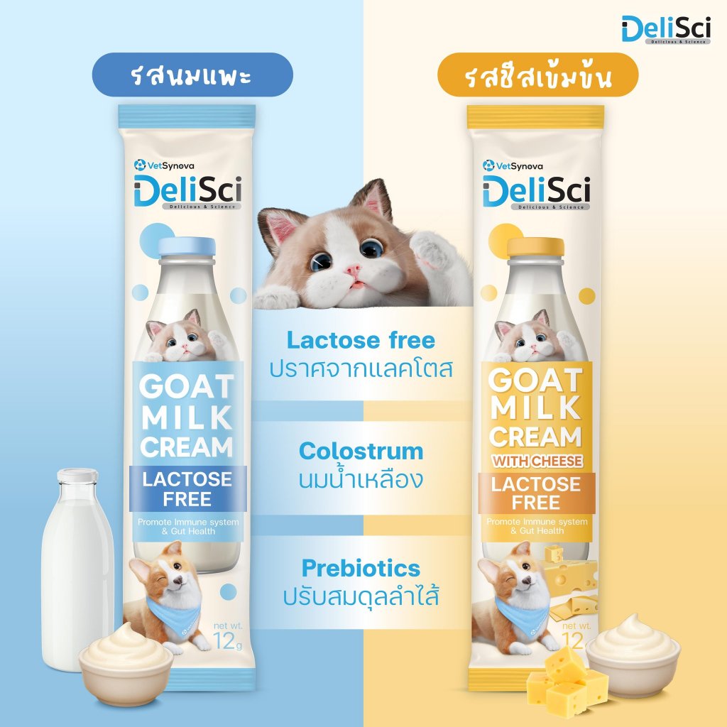 DeliSci Goat Milk Cream ขนมแมวเลียรสครีมนมแพะ สำหรับสัตว์เลี้ยง แลคโตสฟรี ขนาด 12 กรัม {6,12,24,36 ซอง}