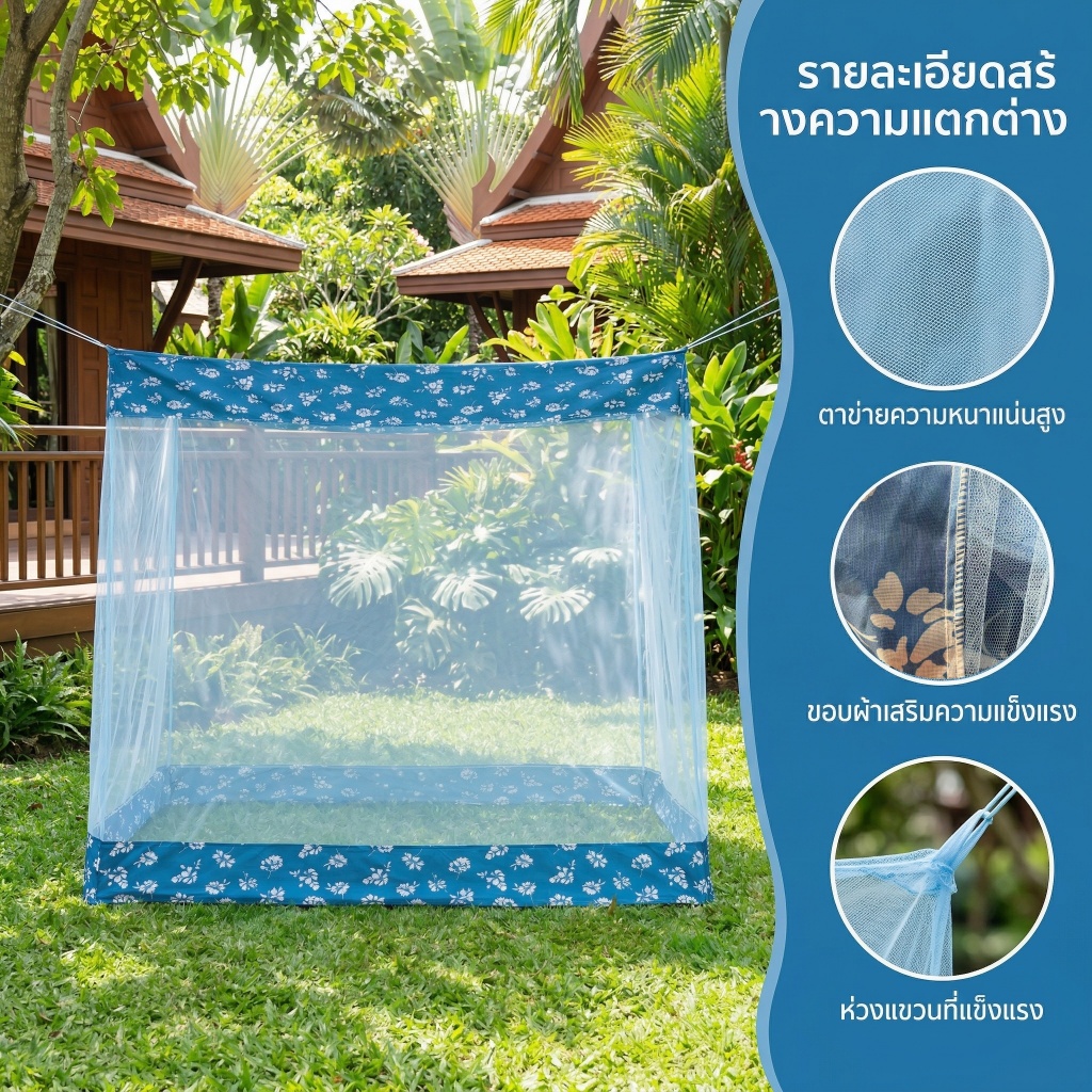 FDM มุ้งกันยุง มุ้ง 5ฟุต 7ฟุต 10ฟุต นอน1-5คน รุ่นประหยัด หลังคาผ้าโพลีกันฝุ่นกันแสง