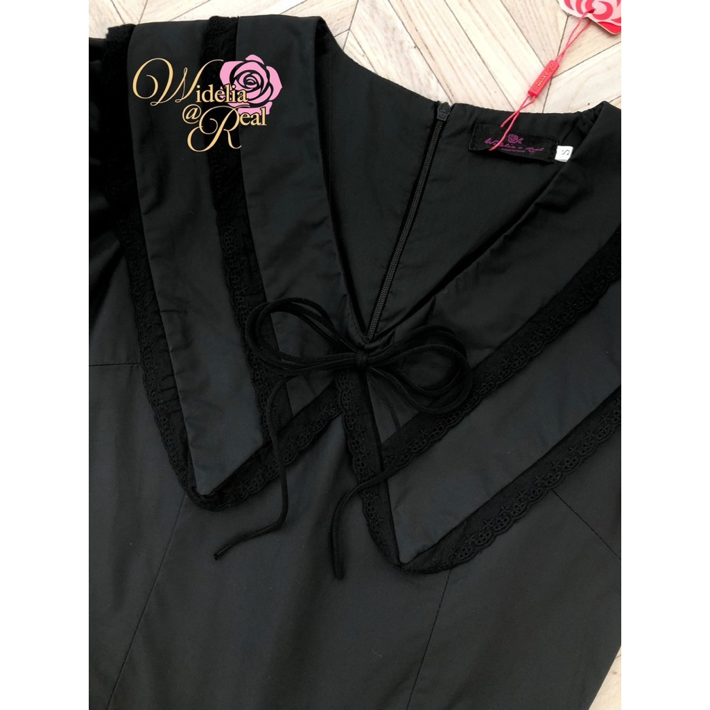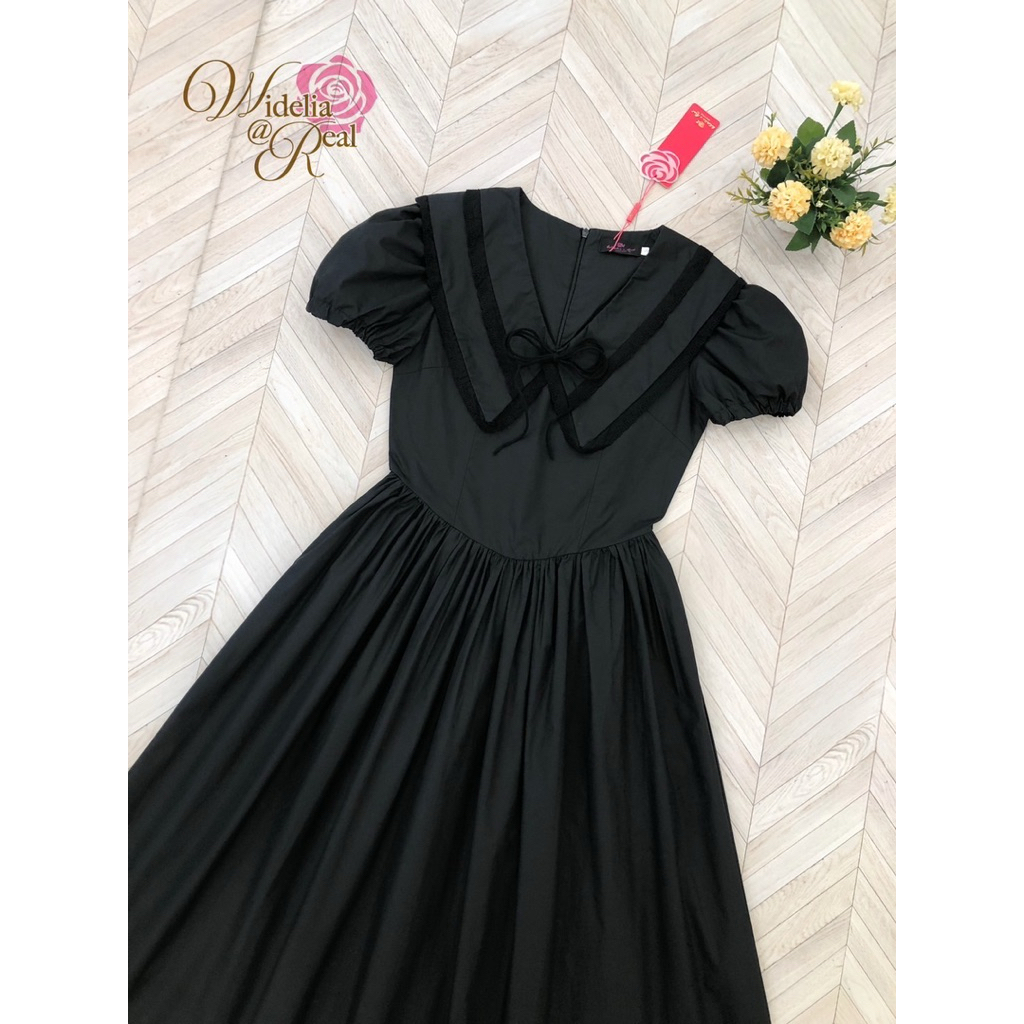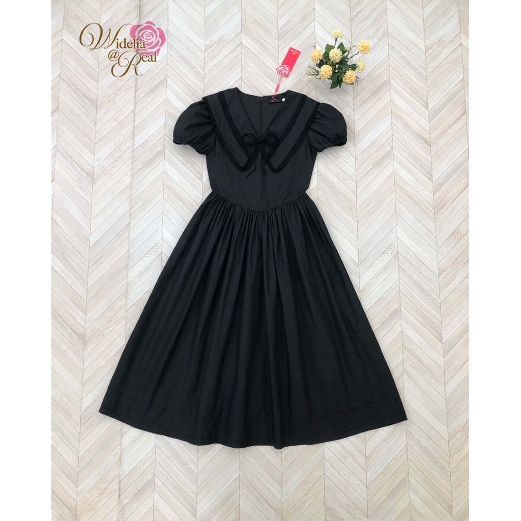 เดรสสีดำตัวยาว เดรสสีดำแขนตุ๊กตาปกคอเย็บ2ชั้น Widelia