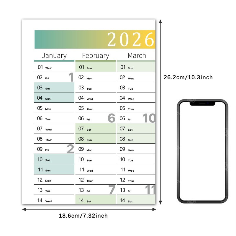 ปฏิทินปี 2026 ปฏิทินตารางช่องเล็กสำหรับปี 2026 แผนการและตารางวัน สามารถเขียนได้ ขนาดใหญ่