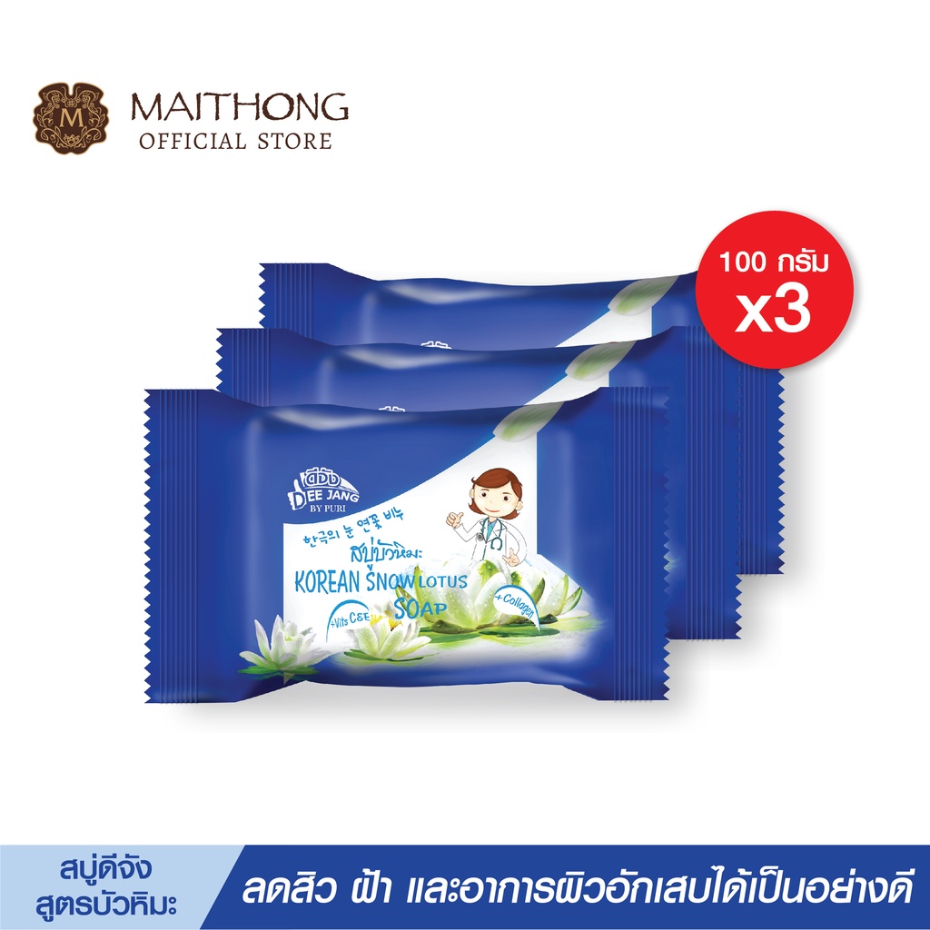 สบู่ดีจัง Deejang Soap สบู่สมุนไพร บัวหิมะ (แพ็ค3) สูตรลับเกาหลี หอมสดชื่น ลดสิวอักเสบ หน้าขาวใส เนียนนุ่ม (สบู่ไหมทอง)