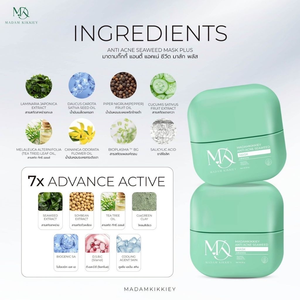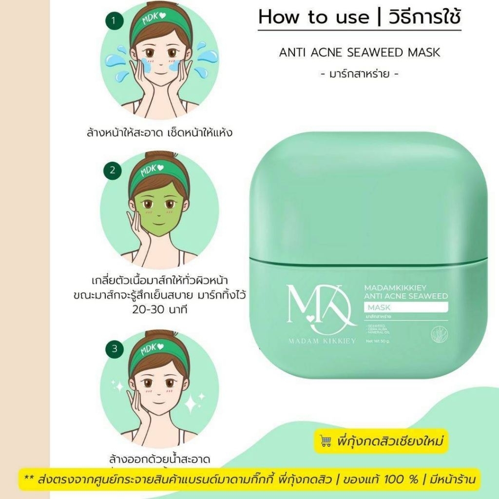 มาร์คสาหร่ายลดสิว มาร์คพี่กุ้งกดสิว มาร์คหน้าใส มาดามกิ๊กกี้