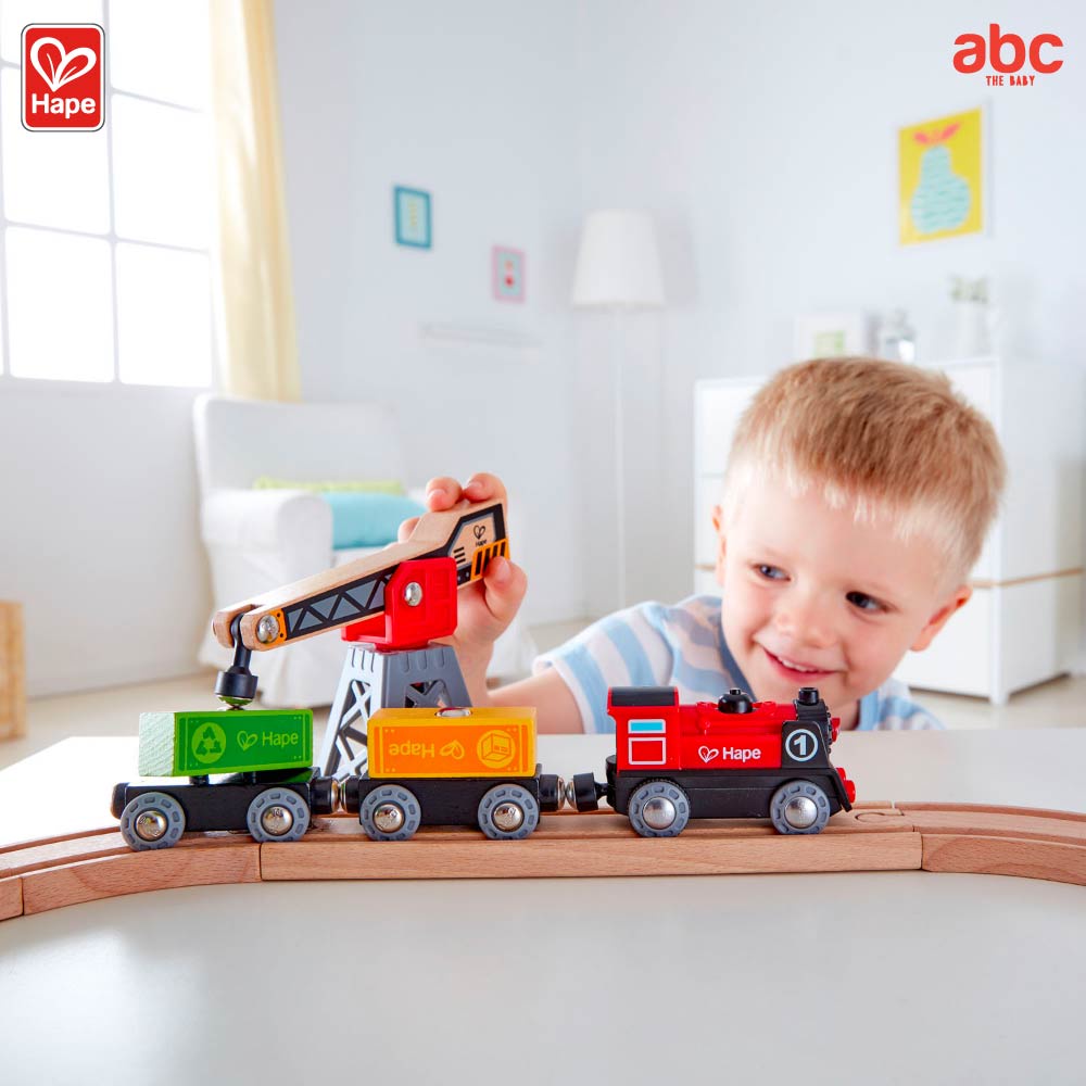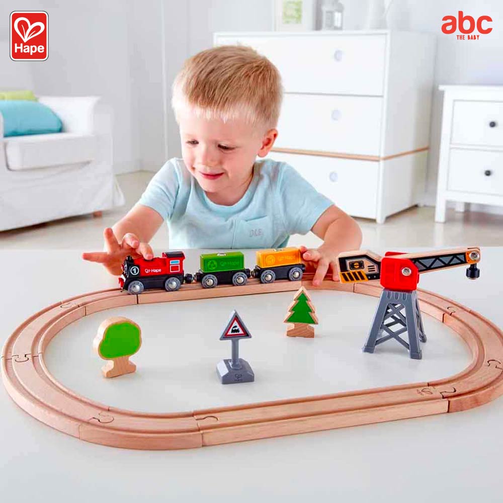 Hape ของเล่นไม้ ชุดรถไฟส่งสินค้าคาร์โก้ Cargo Delivery Loop ของเล่นเสริมพัฒนาการ 3 ขวบ ขึ้นไป