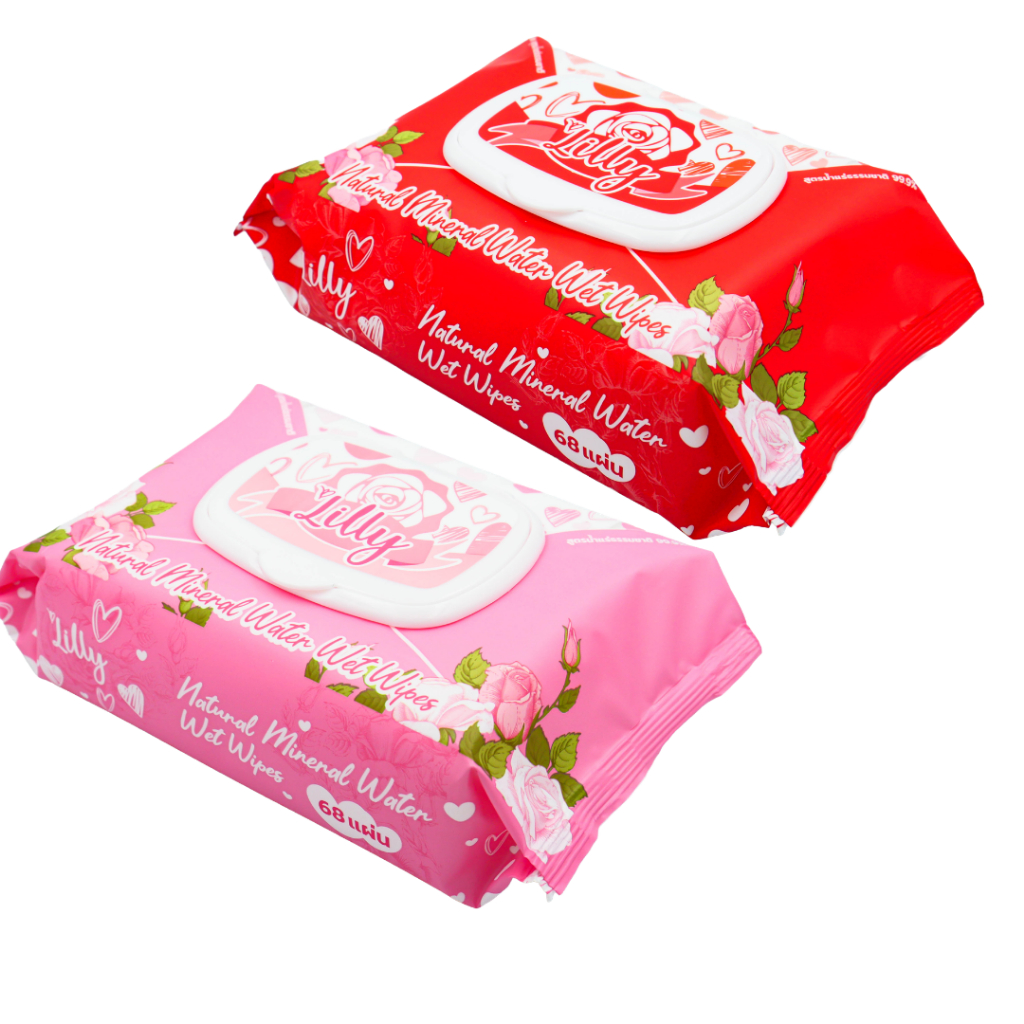 2แพ็ค ทิชชูเปียกลิลลี่ 68แผ่น valentine's day 2แพ็ค แพ็คละ 6ห่อ รวม 12 ห่อ