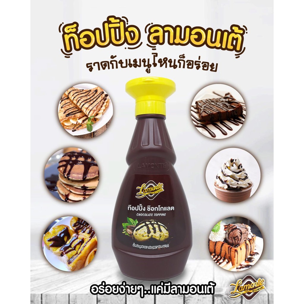 ท็อปปิ้ง ฝาเหลือง ตราลามอนเต้ แบบขวด 500 ก. ช็อคโกแลตราด บราวน์ชูการ์ราดเครื่องดื่ม ซอสบราวน์ชูการ์ ซอสบราว
