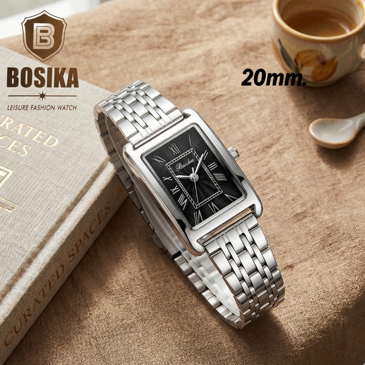 BOSIKA#BG-018 นาฬิกาข้อมือดีไซน์เลขโรมันหน้าปัดทรงสี่เหลี่ยม ขนาด20มิล พร้อมส่ง
