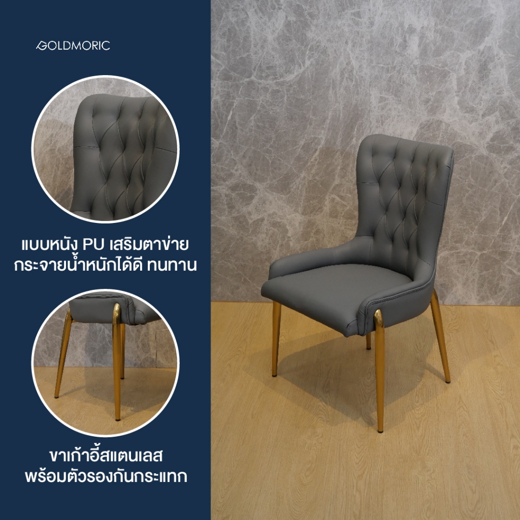Goldmoric เก้าอี้พรีเมี่ยม โครงสแตนเลสแท้สีทอง รุ่น Olivia คุณภาพมีทั้ง หนัง และ กำมะหยี่